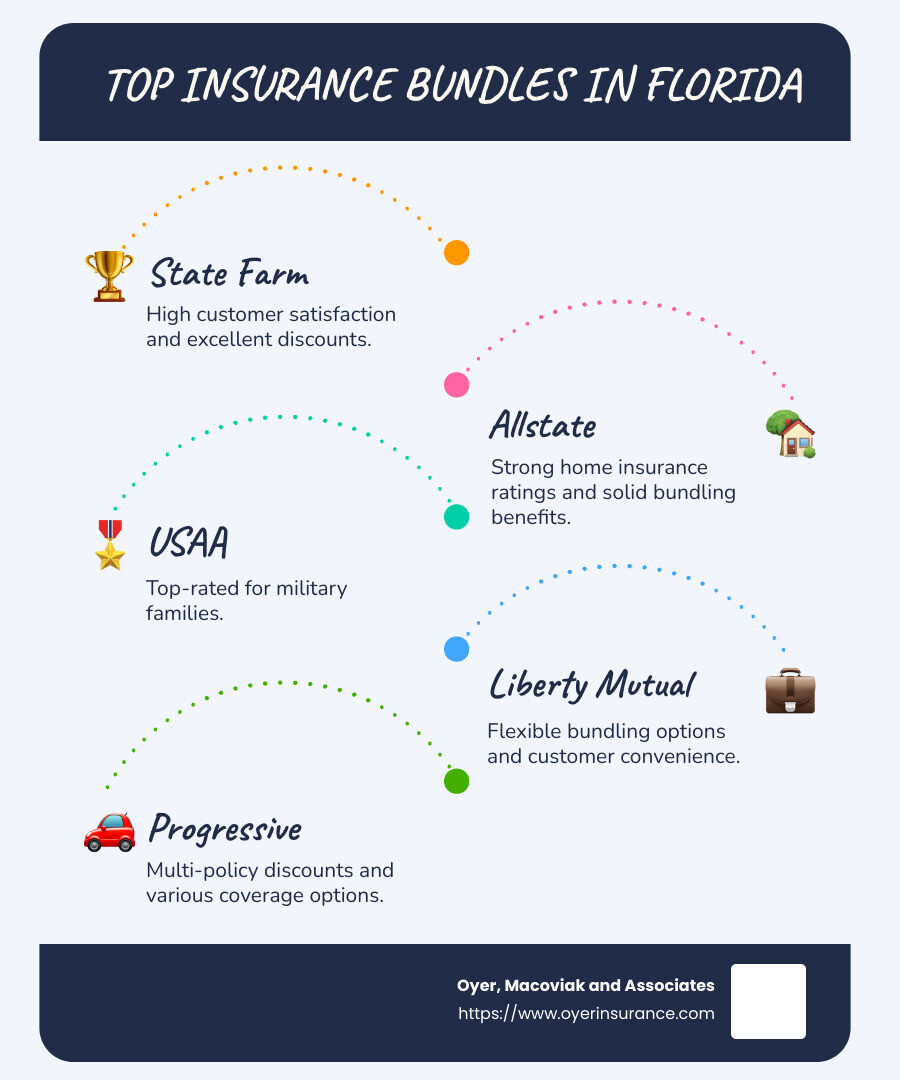 Several major insurers operating in Florida provide competitive bundling options with strong customer service and robust coverage features.