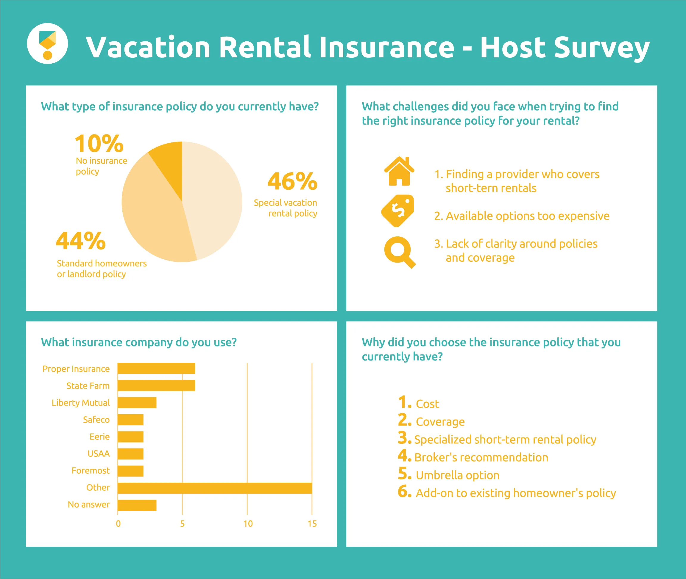 - Most standard homeowner’s insurance policies are designed for properties occupied by the owner or long-term tenants, not for transient guests. These policies commonly exclude coverage when a home is used for commercial purposes, and hosting short-term renters falls into this category.