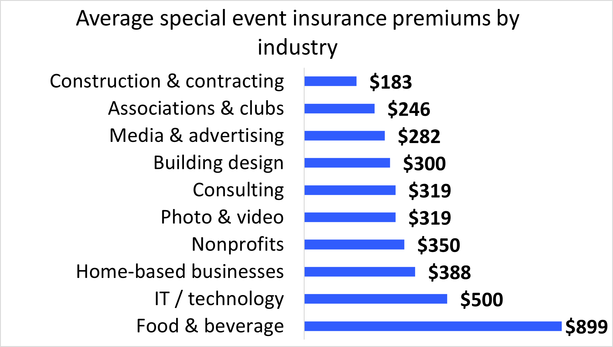 The cost of special event liability insurance can vary widely based on the nature and length of the event. The following table outlines average costs for common event types, based on a one-day policy with $1 million in general liability coverage: